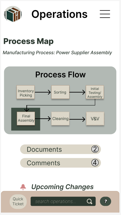 Once the user logs in they are introduced to their dashboard overview which will tell them the health status over all of their divisions. Each division/ business function overview can be explored once clicked into. Weather its a business executive viewing the overall status before making or a customer complaints analyst there are functions to both manage and operate with the business functions of Operations, Quality, Sourcing/ Regulatory, & Logistics.